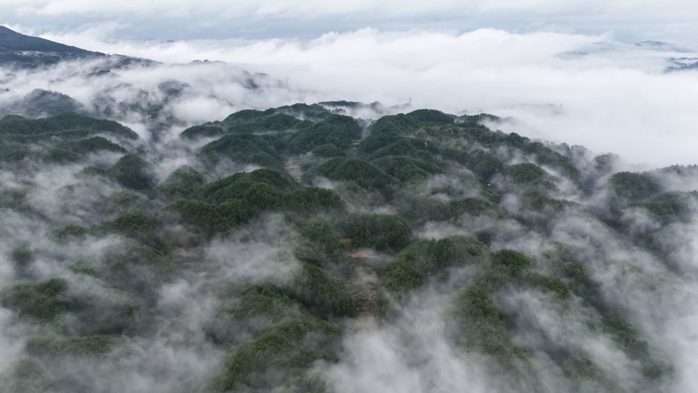 10月16日一早,短暂的降雨过后,贵州省黄平县迎来了美丽的云海。山野被云雾轻轻笼罩,山云交织,犹如一幅流动的水墨画,充分表现了秋景的神韵。清晨,得益于水汽充足、温差适宜的条件,黄屏山上的水汽很快凝结成雾气,逐渐形成了蔚为壮观的云海。 “一早就看到了这美丽的景色,山峦、云彩仿佛铺在宣纸上,非常震撼。”早起欣赏风景的摄影爱好者陈先生说。据当地村民介绍,秋雨后的晴天是观赏云海的最佳时间。湿润的空气与山地地理的结合,使云海景观更加稳定、个性是的。 (陈晓欣)